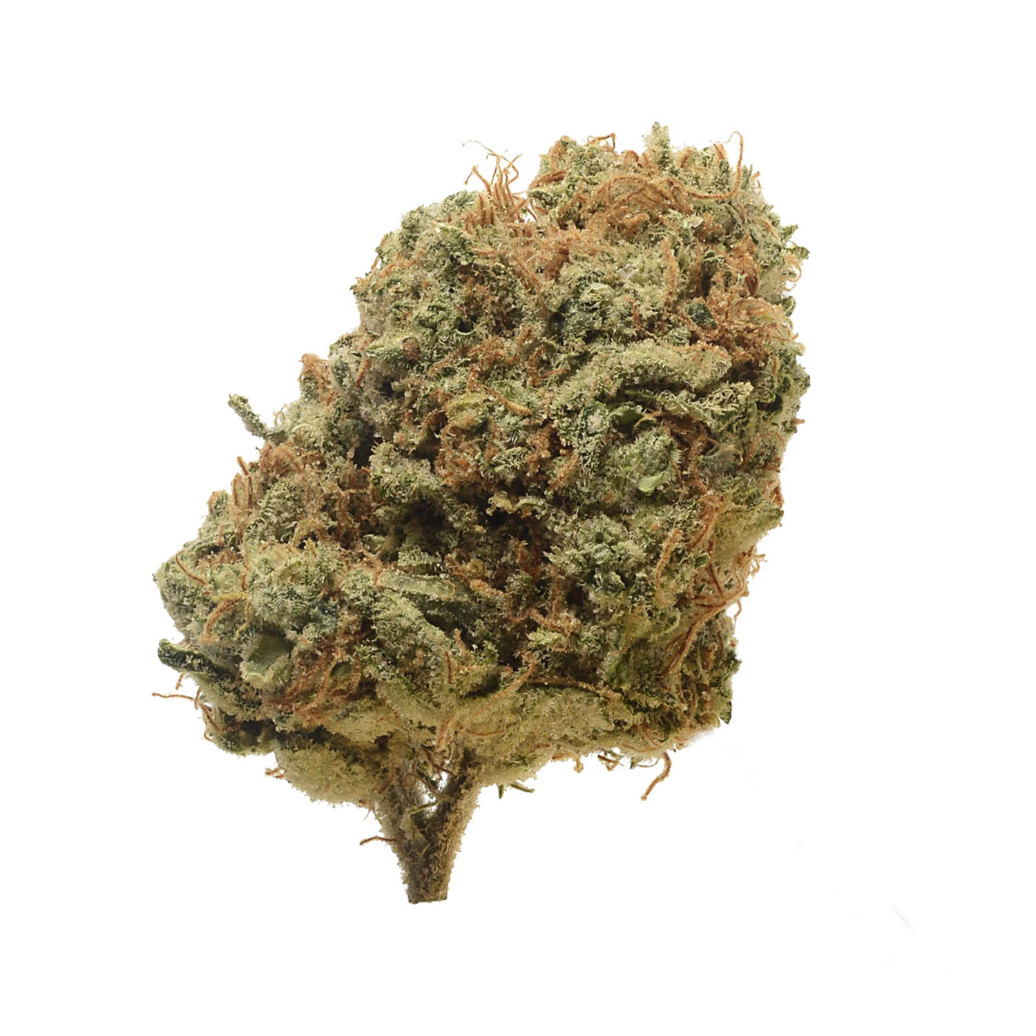 Critical buds are dense, light green, and coated in sticky trichomes. The flowers feature bright orange pistils and a subtle golden sheen, reflecting their resin-rich nature. The structure is compact and solid, typical of its Afghani lineage.